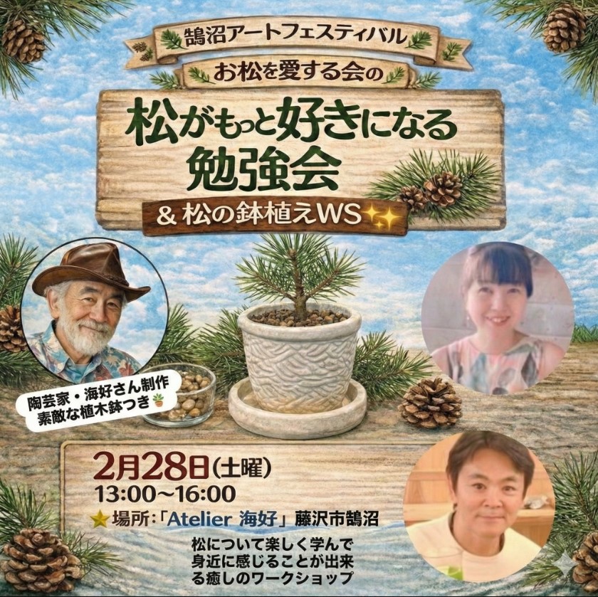 松がもっと好きになるお松の勉強会&松の鉢植えWS開催しまつ 2月28日(土曜)13:00-16:00『Atelier 海好 』 神奈川県藤沢市鵠沼