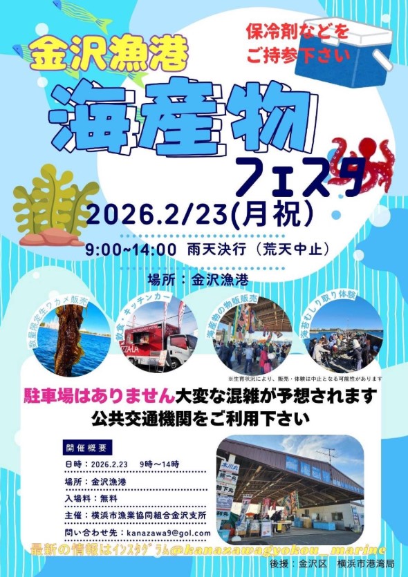 『海産物フェスタ』2月23日(月・祝)9:00〜14:00 横浜市金沢漁港毎年1万人も来場者のあるビックイベント 昨年に引き続き『海産物フェスタ』に、お松を愛する会が出店いたしマツ