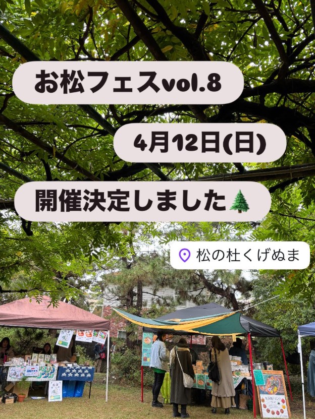 お松フェスvol.8✨✨ 次回は、4月12日(日)10:00〜15:00に 決定いたしました🌲🙌お松フェスvol.8✨✨4月12日(日)10:00〜15:00に決定いたしました🌲🙌🙌出店者など詳しい情報は、またお知らせいたしまつ🌲 ぜひぜひこの日は空けておいてくださいね☺️